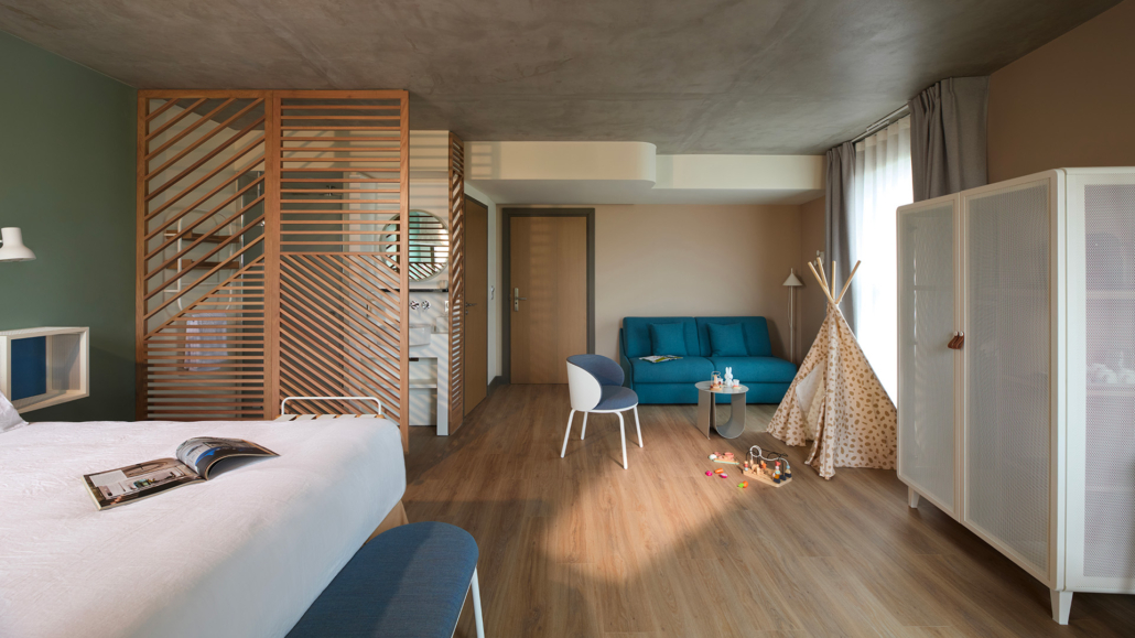 Les chambres, au design épuré et chaleureux, sont pensées pour offrir un confort optimal grâce à une sélection de matériaux qualitatifs et d’équipements intégrés. Les espaces communs, notamment le Club, prolongent cette expérience dans un cadre convivial et accessible à toute heure.