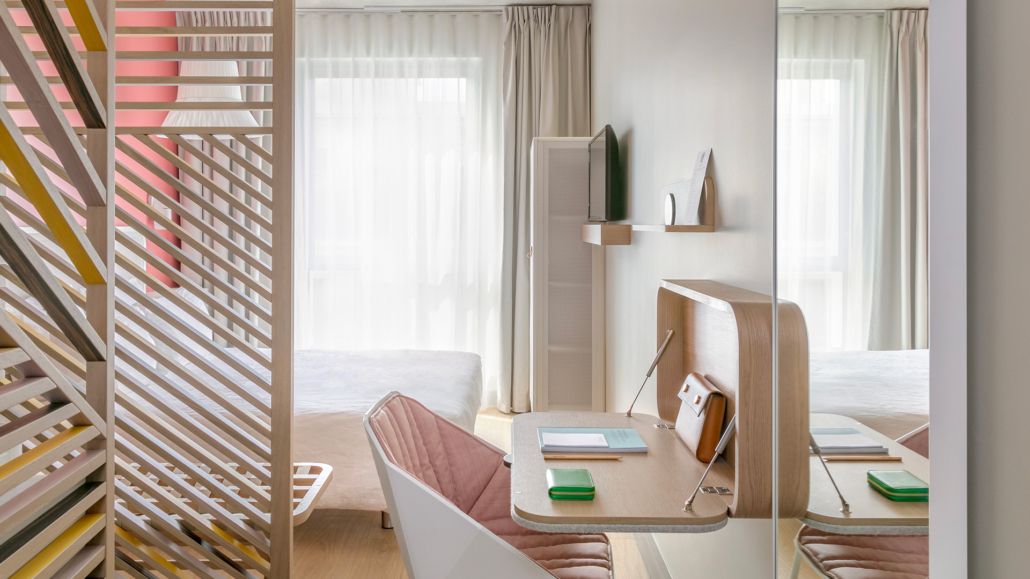 GH Partners a accompagné le projet dans la mise en œuvre des aménagements des chambres et parties communes, assurant le respect des standards de la marque et la cohérence globale de la réalisation.